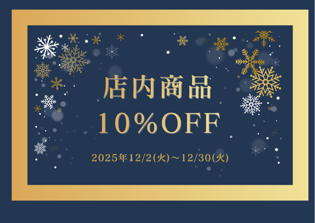 毎年恒例の店内商品10%オフキャンペーンの12月がやってきますよー!!